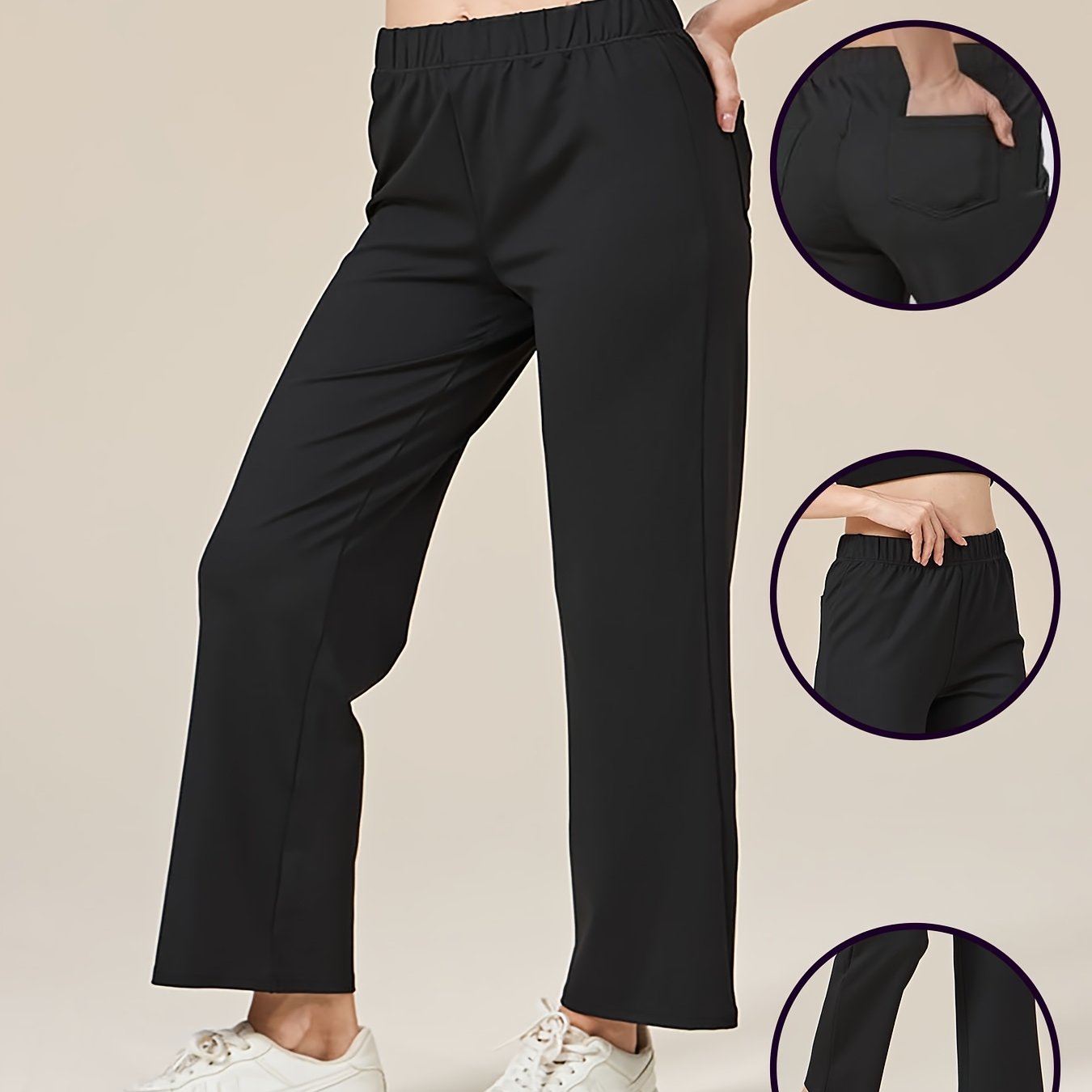 TEMU 여성용 우아한 레그 팬츠 - 신축성 있고 비치는 롱 트라우저, 모든 계절에 정장 및 캐주얼 웨어에 적합, 데일리, 사무실 및 파티에 완벽 - 스타일리시한 외관의 간편한 관리 여성용 팬츠