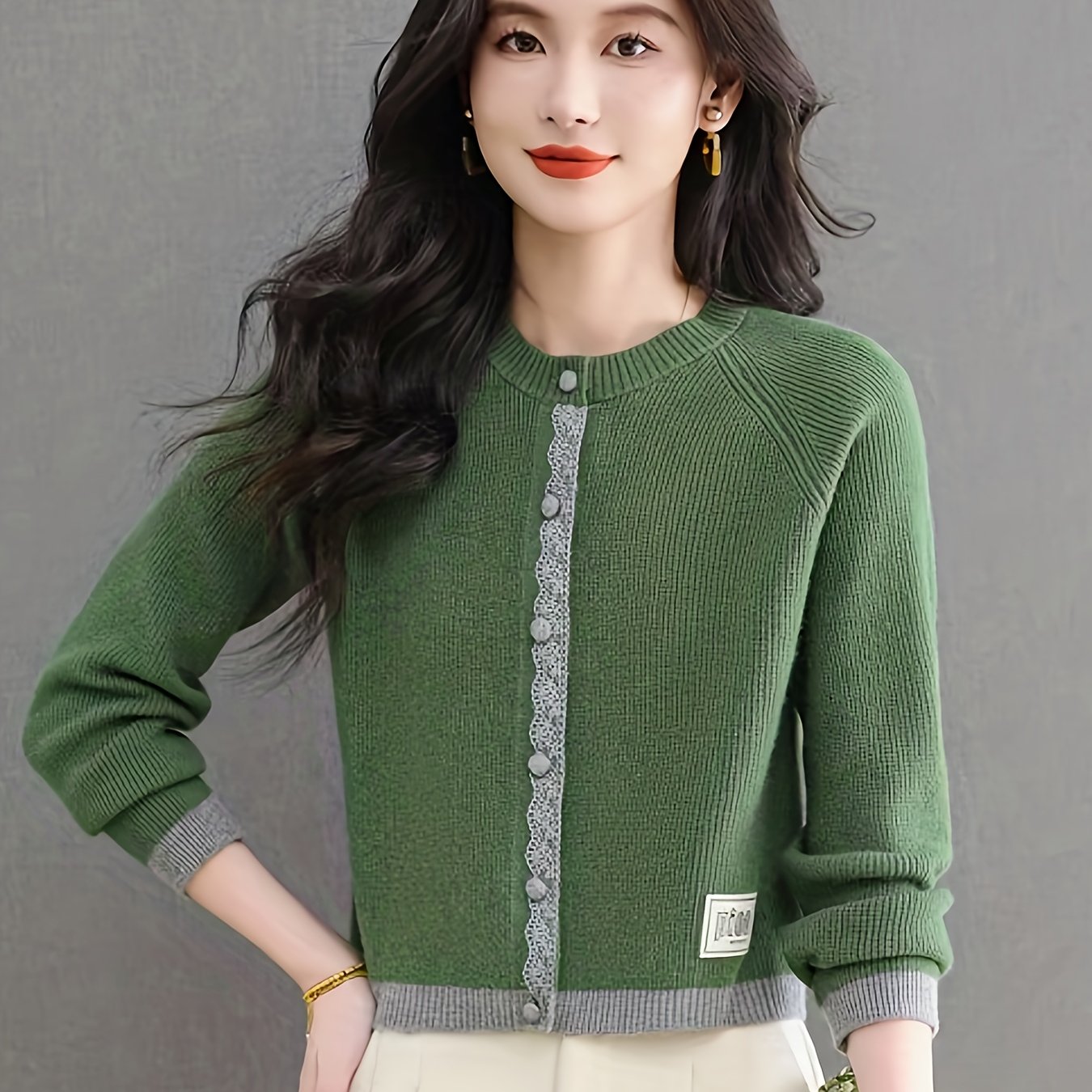 TEMU 여성용 우아한 V넥 가디건 - 루즈핏 긴소매 스웨터 코트, 버튼 앞면, 두꺼운 따뜻한 가을 & 겨울 재킷, 오피스, 파티, - 아시아풍 여성 의류, 가디건 스웨터, 파티 복장, 오피스룩, 여성 니트, 여성 상의, 가디건 여성, 긴소매 가디건, 가디건 오 coquine
