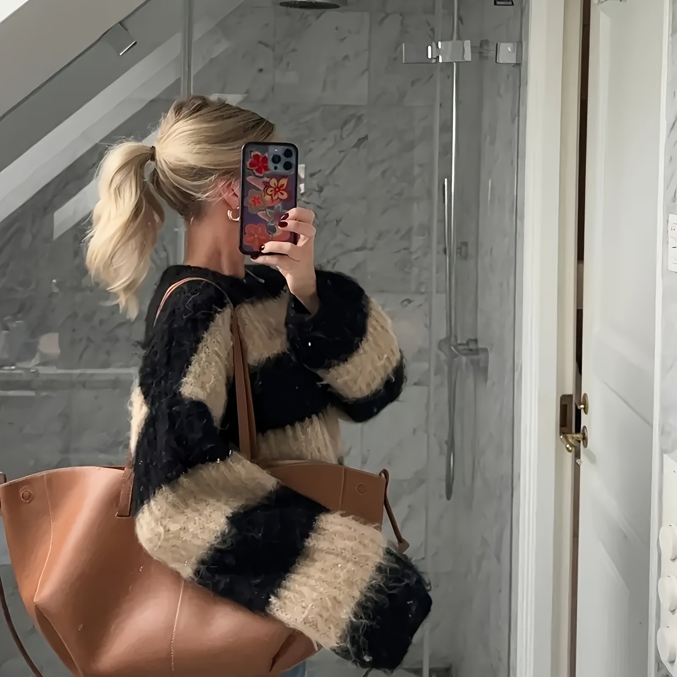 TEMU 여성용 겨울 스웨터 - 우아한 블랙 & 화이트 H라인 루즈핏 스웨이크 탑, 라운드넥 긴팔 블라우스, 가을/겨울 캐주얼 & 스마트캐주얼 아웃핏 (비-)