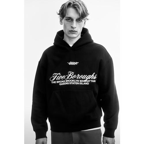 H&M 프린트 후드티 루즈핏 블랙/Five Boroughs 1261663001