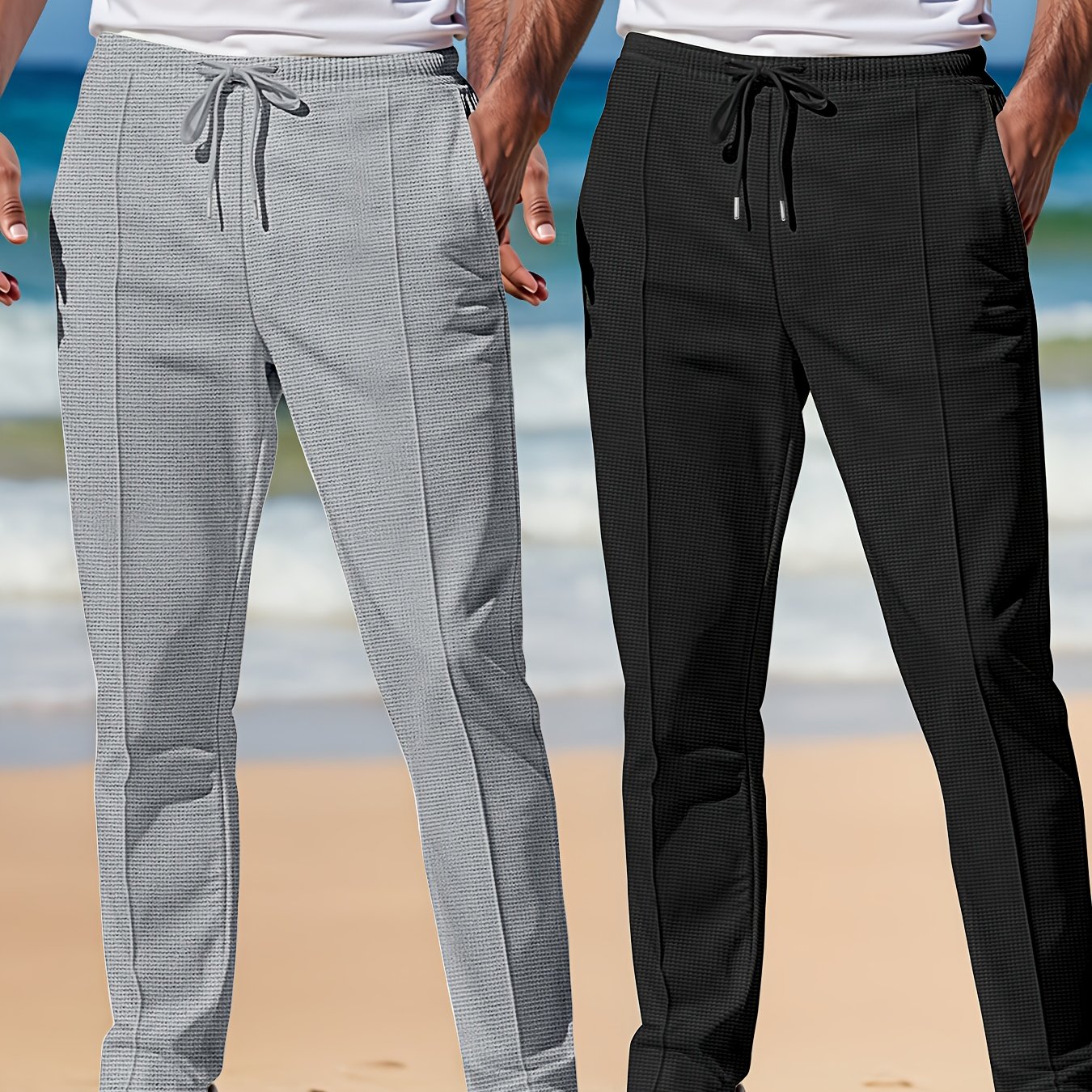 TEMU 여성 & 남성용 보온 겨울 바지 - 탄성 허리 & 커프스 헴이 있는 튼튼한 보온 바지, 부드럽고 신축성 있는 원단, 옆면 포켓 - 일상복 & 정장 의상용 냉기 방지 바지 - 세탁기 사용 가능, 캐주얼 웨어, 세로