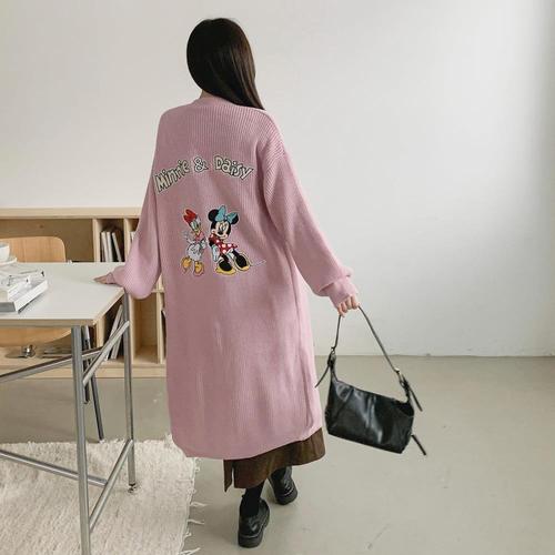 [미라클세븐]여성 캐릭터 프린트 루즈핏 골지 롱 가디건