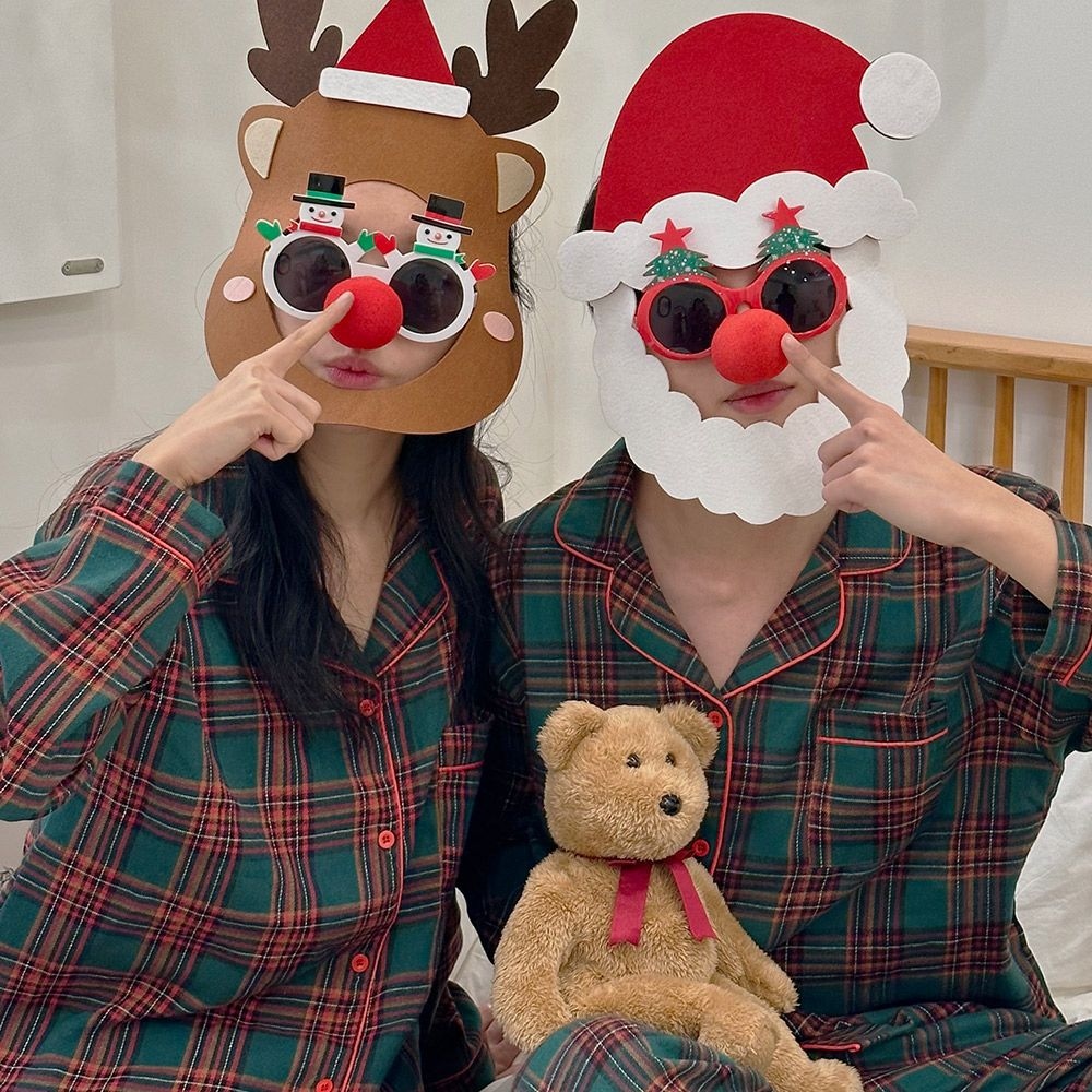 크리스마스 잠옷 가면 세트 파티 코스튬 커플 파자마 선글라스 홈웨어