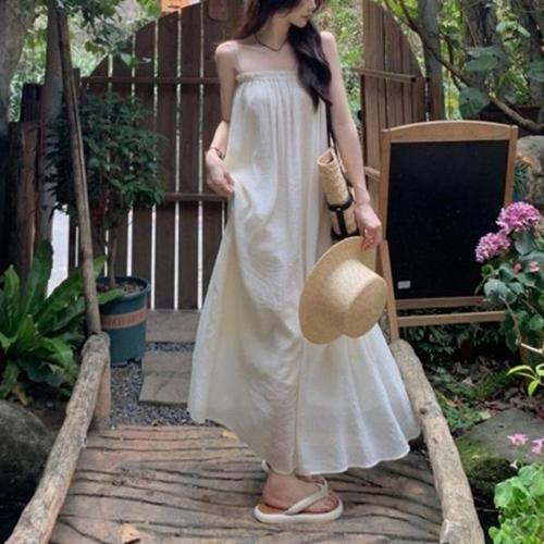 [엄지척]여성 크림색 끈 롱원피스 해외여행 소풍 휴가 동남아_19910880_667501