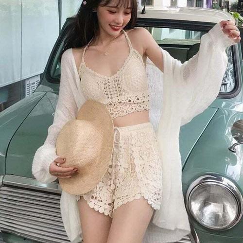 [셀럽하우스]여성 MWFB6672 해외 여행 휴양지 레이스 나시 숏 팬츠 세트