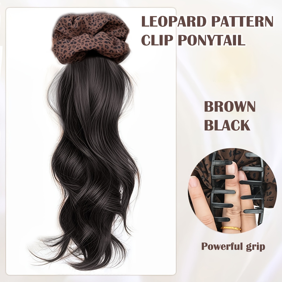 TEMU 빈티지 프린트 헤어타이 로우 포니테일 한국식 자연스러운 볼륨 헤어 익스텐션 브레이드 가을 겨울 약간 컬리 클로 클립 포니테일 아름다운 백뷰 레이디 이미지