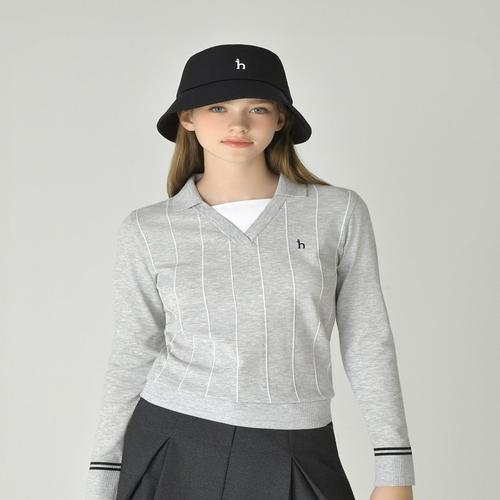 헤지스 골프 여성 그레이 여성 핀스트라이프 오픈 카라 니트 (HWSW5C615G1)