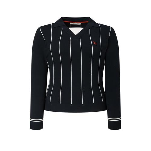 [헤지스골프][NEW]네이비 여성 핀스트라이프 오픈 카라 니트 (HWSW5C615N3)