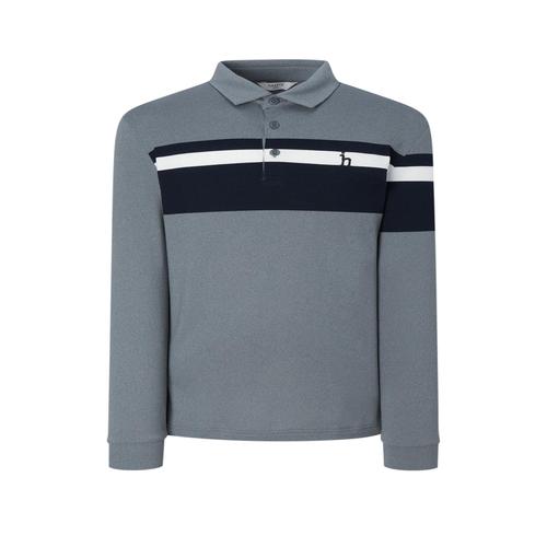 헤지스 골프 남성 [스테디셀러]로고 스트라이프 긴팔 폴로 티셔츠 (GRAY) (WPTS4D702G2)