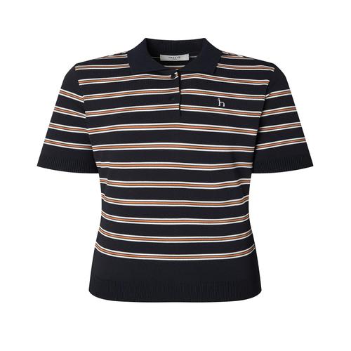 헤지스 골프 여성 네이비 여성 멀티 스트라이프 반팔 카라 스웨터 (HWSW5C513N3)