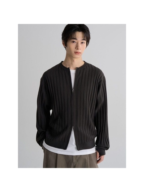 [에잇세컨즈] 립 조직 라운드넥 핸드워머 집업 카디건브라운 (45625ASC2D)