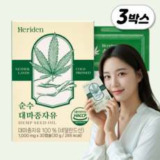 냉압착 대마종자유 식약처인증 햄프씨드오일 HACCP 식물성 헤리든 순수 1000mg 3박스, 3개, 30정