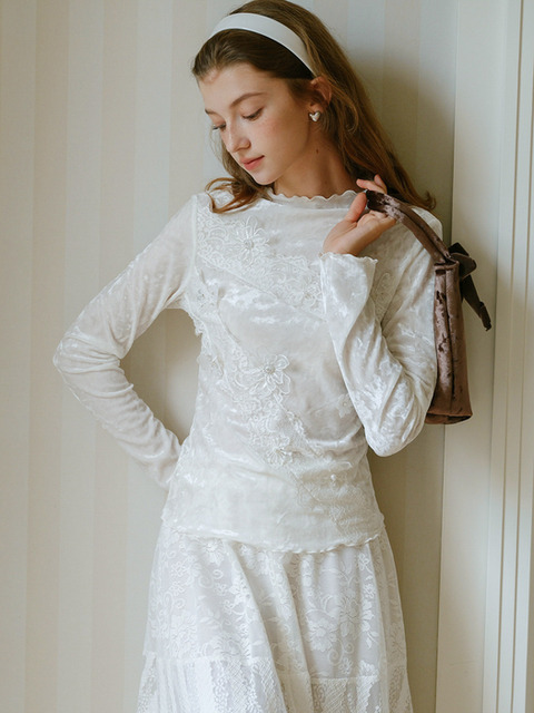 [쎄무아듀] Cest_Lace flower velvet long sleeve top