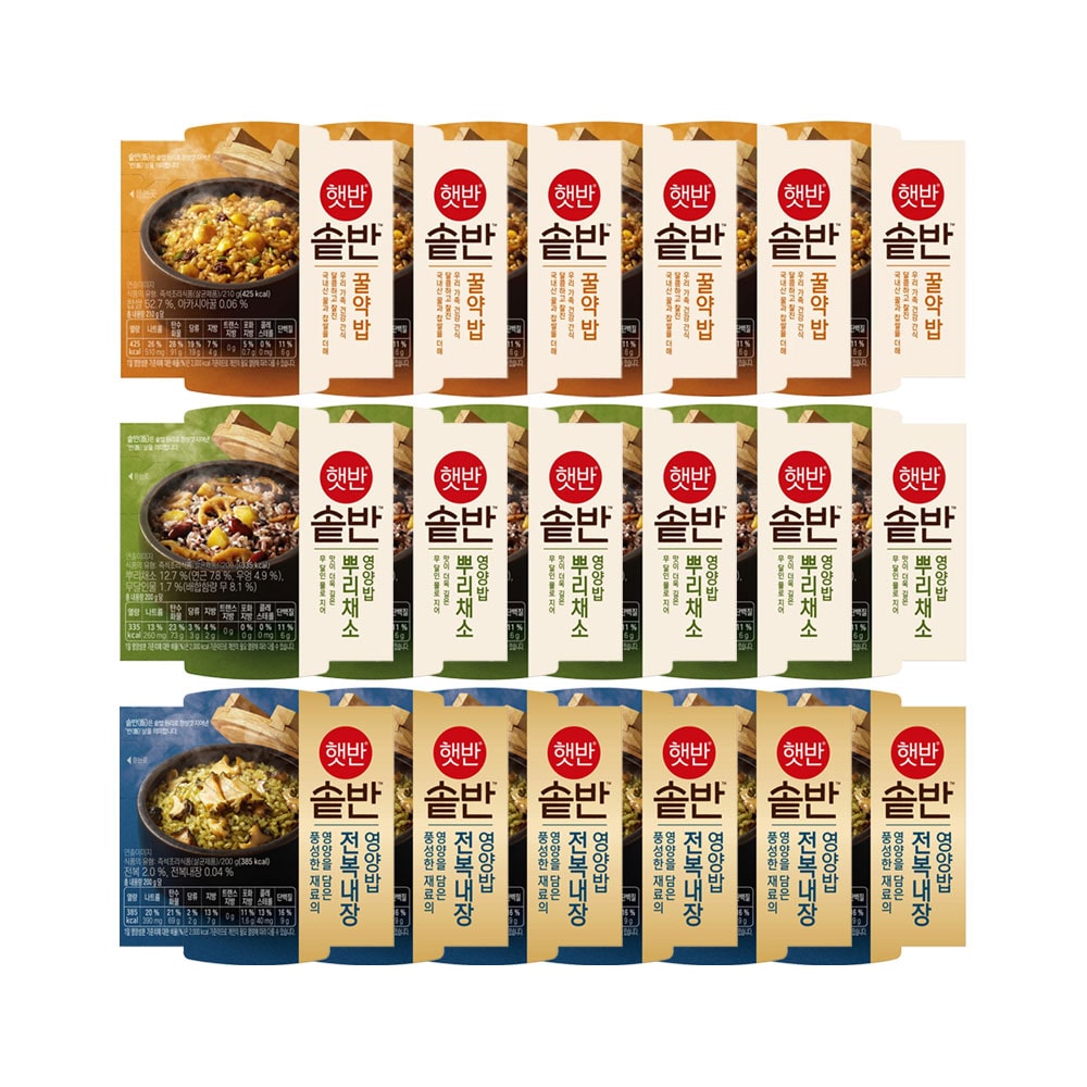 햇반 솥반 베스트 3종 18개 세트 (꿀약밥x6+뿌리채소x6+버섯영양x6)