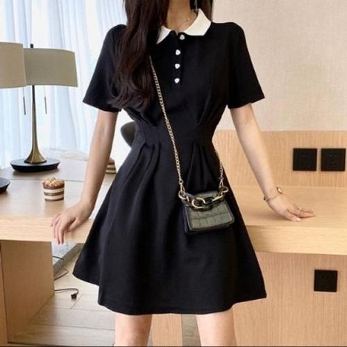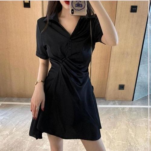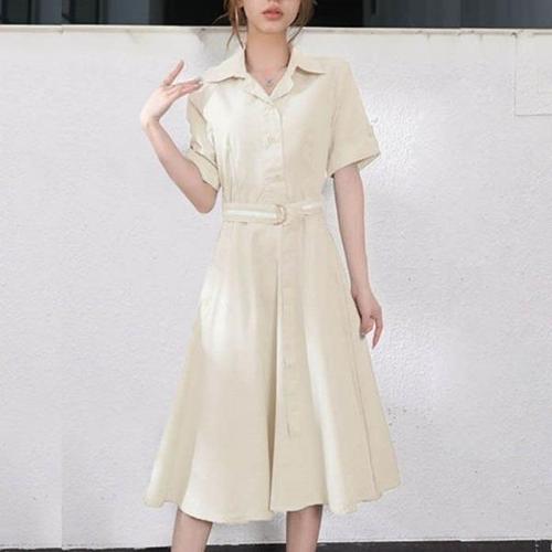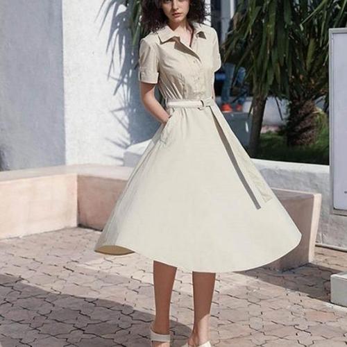 [엄지척]여성 허리 라인 포인트 셔츠형 우아한 반팔 원피스_19911062_667501