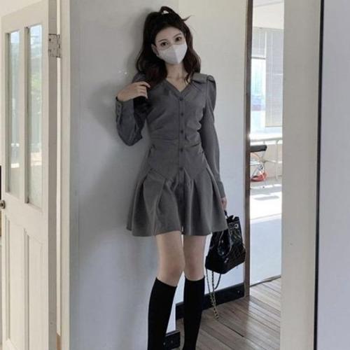 [엄지척]허리 원피스 플레어 미니원피스 셔링 라인 미니 카라_19912819_667501