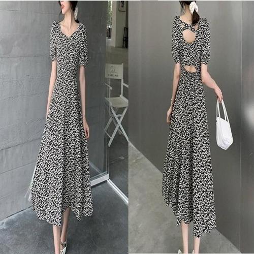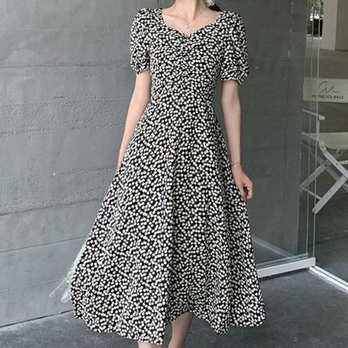 [엄지척]쉬폰 셔링 뒷어깨 허리트임 포인트 A라인 반팔 원피스_19910600_667501