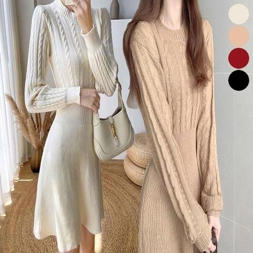 [엄지척]여자 꽈배기 니트 허리 밴딩 A라인 원피스 일체형_19912501_667501