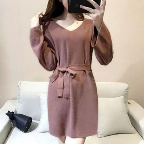 [엄지척]겨울원피스 V넥 허리라인 원피스 리본 니트원피스_19909926_667501