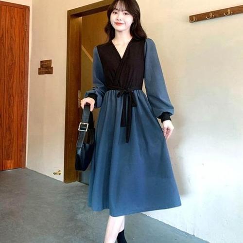 [엄지척]허리스트랩 포인트 배색 브이넥 여성 A라인 롱원피스_19909887_667501