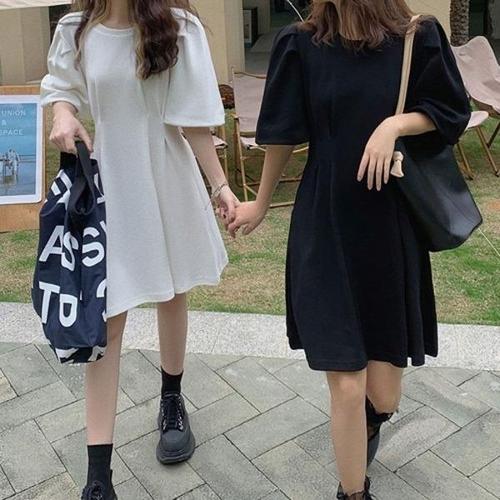 [엄지척]허리라인 절개 미니원피스 소매밴딩 심플_19913340_667501