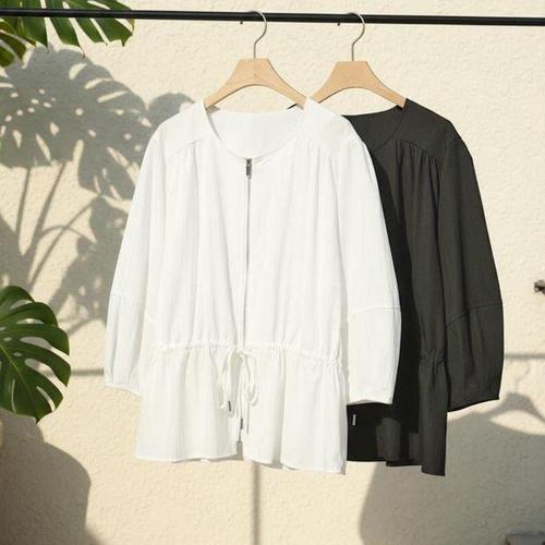 [옷자락]여자 폴리나일론 루즈핏 허리스트링 집업 블라우스