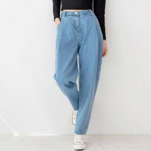 [셀럽하우스]잘록 MOLA1335 스판 청바지 오버 통은 허리 넉넉한 배기핏 오버