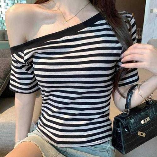 [셀러허브_여성트랜드패션]Rly 캐주얼 디자인 여성 스트라이프 오프숄더 반