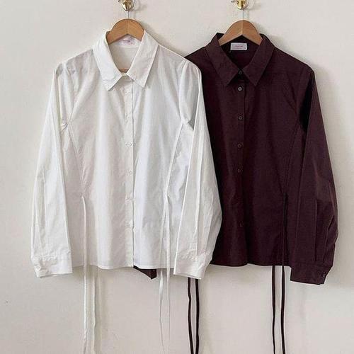 [행복여] 에티 뒷 브이 절개 리본 시스루 셔츠 남방