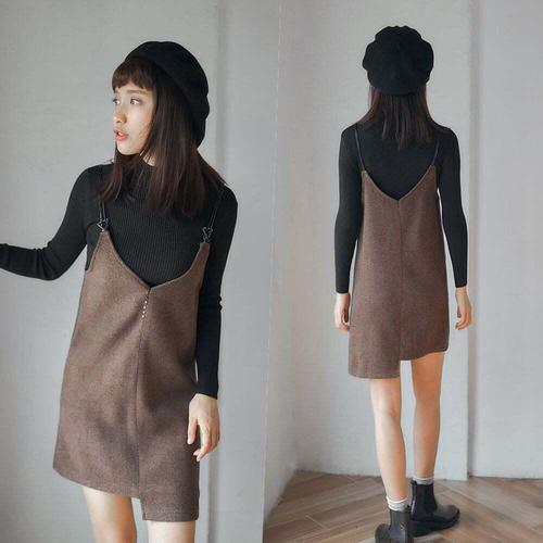[빈HU] BZ62ZS01BN 브라운 해링본 점퍼 스커트 원피스