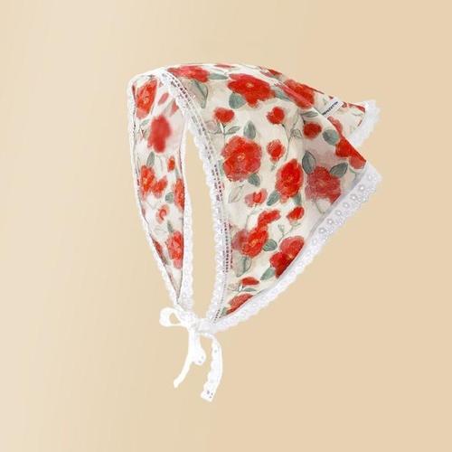 프렌치 레이스 삼각 헤어스카프 쁘띠 플라워 레이스