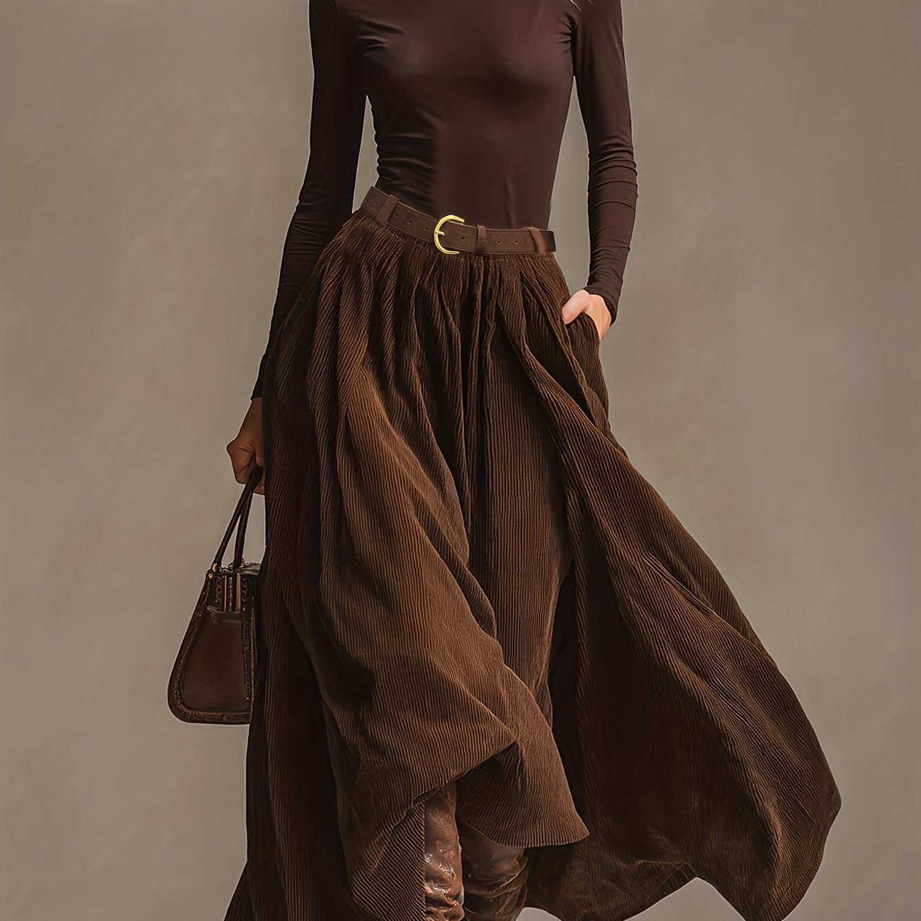 TEMU 세련되고 우아한 빈티지 하이넥 티셔츠와 코듀로이 미니 스커트 세트 [Nian Nian]