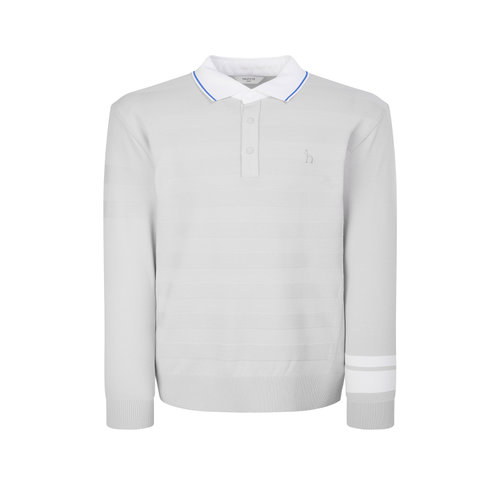 헤지스 골프 그레이 남성 조직 믹스 스트라이프 카라 니트 티셔츠 (HUSW6A211G1)