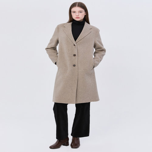 헤지스 여성 [클리어런스][스테디셀러][울100] 베이지 멜란지 롱 코트 (WSCO4DC10I1)