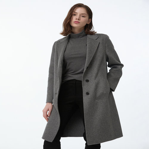 헤지스 여성 [클리어런스][스테디셀러][캐시미어] 그레이 멜란지 롱 코트 (WSCO4DC10G2)