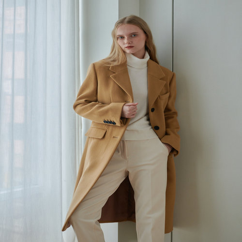 헤지스 여성 [클리어런스][울100] 베이지 테일러드 롱 코트 (HSCO4D781I2)