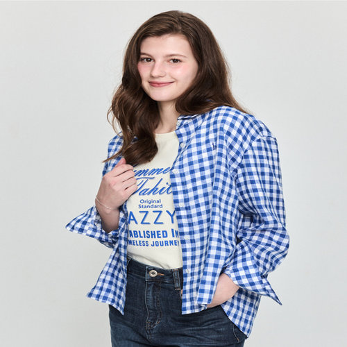 헤지스 여성 [스테디셀러][린넨100]블루 깅엄 체크 루즈핏 셔츠 (WSSH5BC39B3)