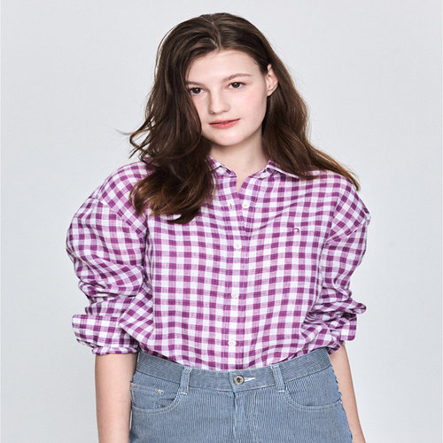 헤지스 여성 [스테디셀러][린넨100]퍼플 깅엄 체크 루즈핏 셔츠 (WSSH5BC39U2)