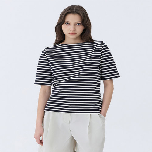 헤지스 여성 [스테디셀러][면100]다크네이비 스트라이프 반소매 티셔츠 (WSTS5B322N3)