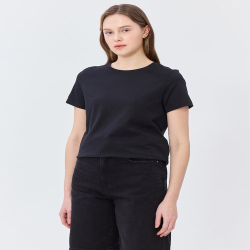 헤지스 여성 [스테디셀러][면100]블랙 로고 자수 반소매 티셔츠 (WSTS5B330BK)