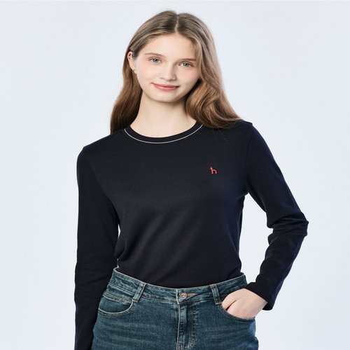 헤지스 여성 [스테디셀러][면100]네이비 에센셜 니트라이크 긴소매 티셔츠 (WSTS5AC15N2)