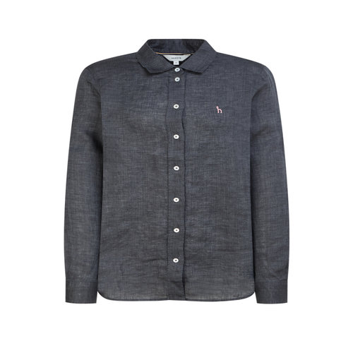 헤지스 여성 [아이코닉] 레귤러핏 린넨 셔츠 다크그레이 (HSSH6BC30G3)