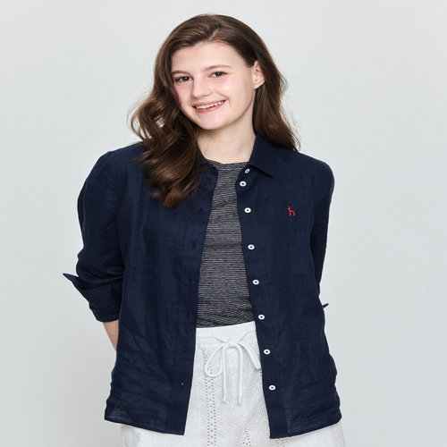 헤지스 여성 [스테디셀러][린넨100]네이비 솔리드 레귤러핏 긴소매 셔츠 (WSSH5BC30N2)