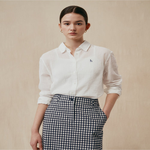 헤지스 여성 [스테디셀러][면100]화이트 솔리드 아사 릴렉스핏 긴소매 셔츠 (WSSH5BC33WT)