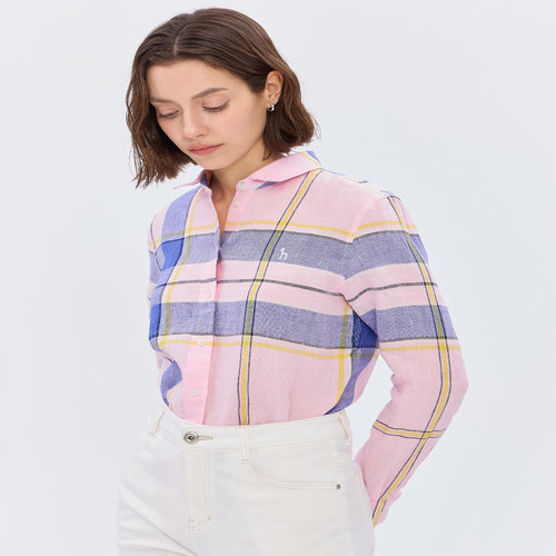 헤지스 여성 [스테디셀러][린넨100]핑크 메가 체크 레귤러핏 긴소매 셔츠 (WSSH5BC32P1)