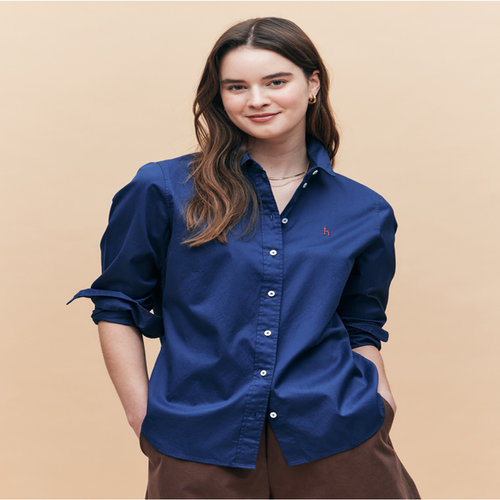 헤지스 여성 [스테디셀러][면100]다크블루 페더 트윌 레귤러핏 긴소매 셔츠 (WSSH5AC15B3)