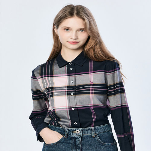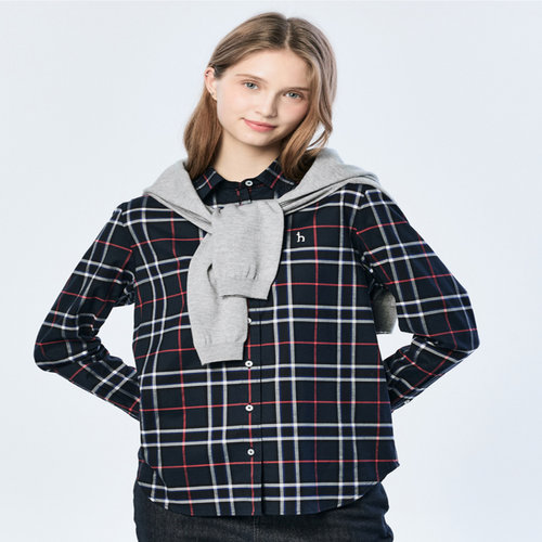 헤지스 여성 [스테디셀러][면100]네이비 클래식 체크 긴소매 셔츠 (WSSH5AC12N2)