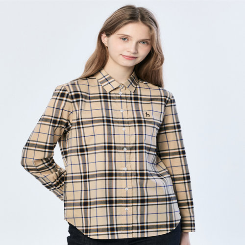 헤지스 여성 [스테디셀러][면100]베이지 클래식 체크 긴소매 셔츠 (WSSH5AC12I2)