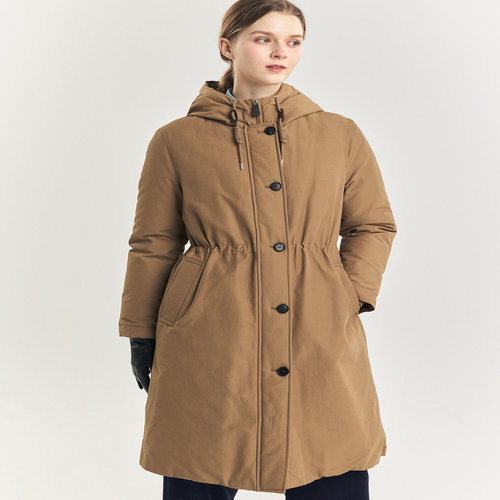 헤지스 여성 [클리어런스][스테디셀러][구스다운] 카멜 야상형 논퀼팅 롱 헤비다운 점퍼 (WSJU4D006CM)