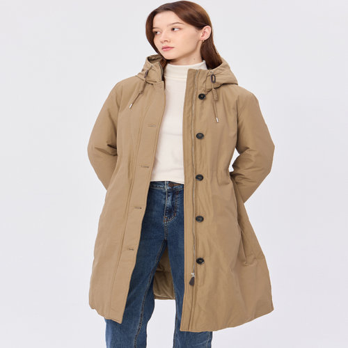 헤지스 여성 [클리어런스][스테디셀러][덕다운] 카멜 야상형 롱 논퀼팅 헤비다운 점퍼 (WSJU4D016CM)